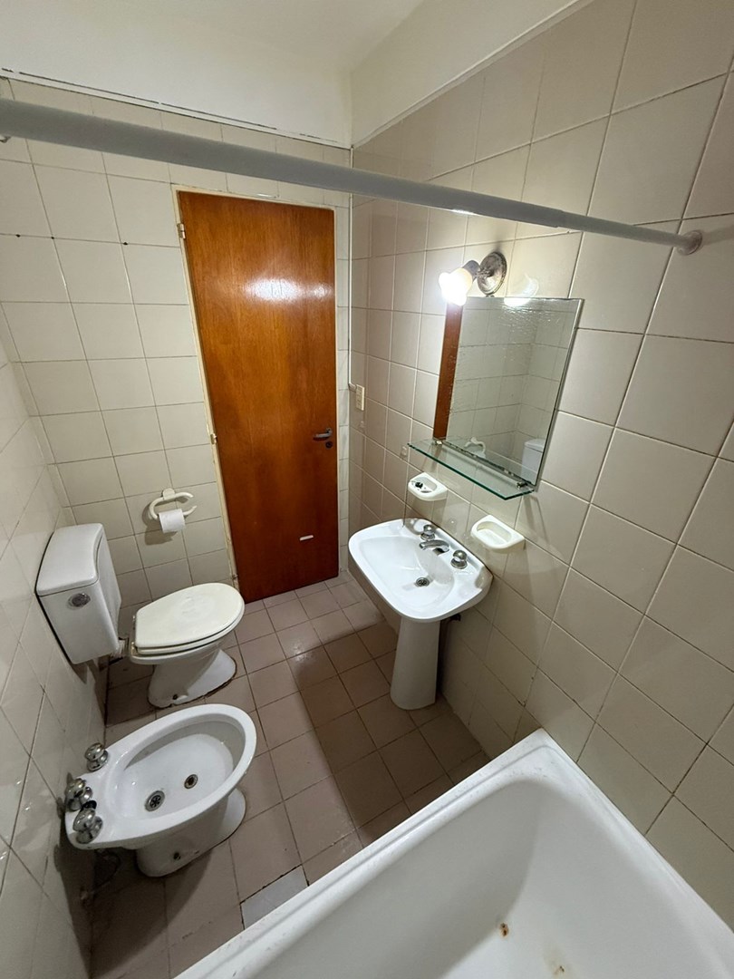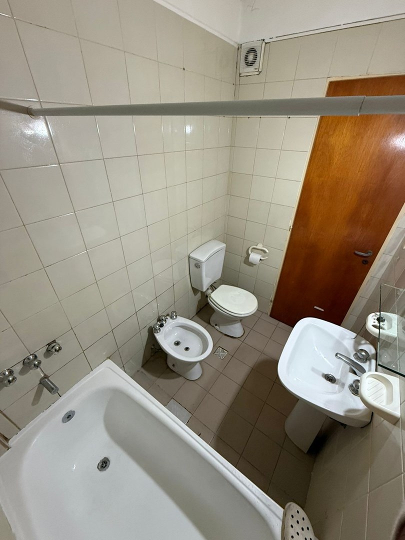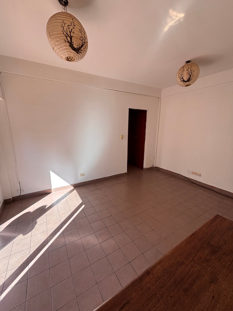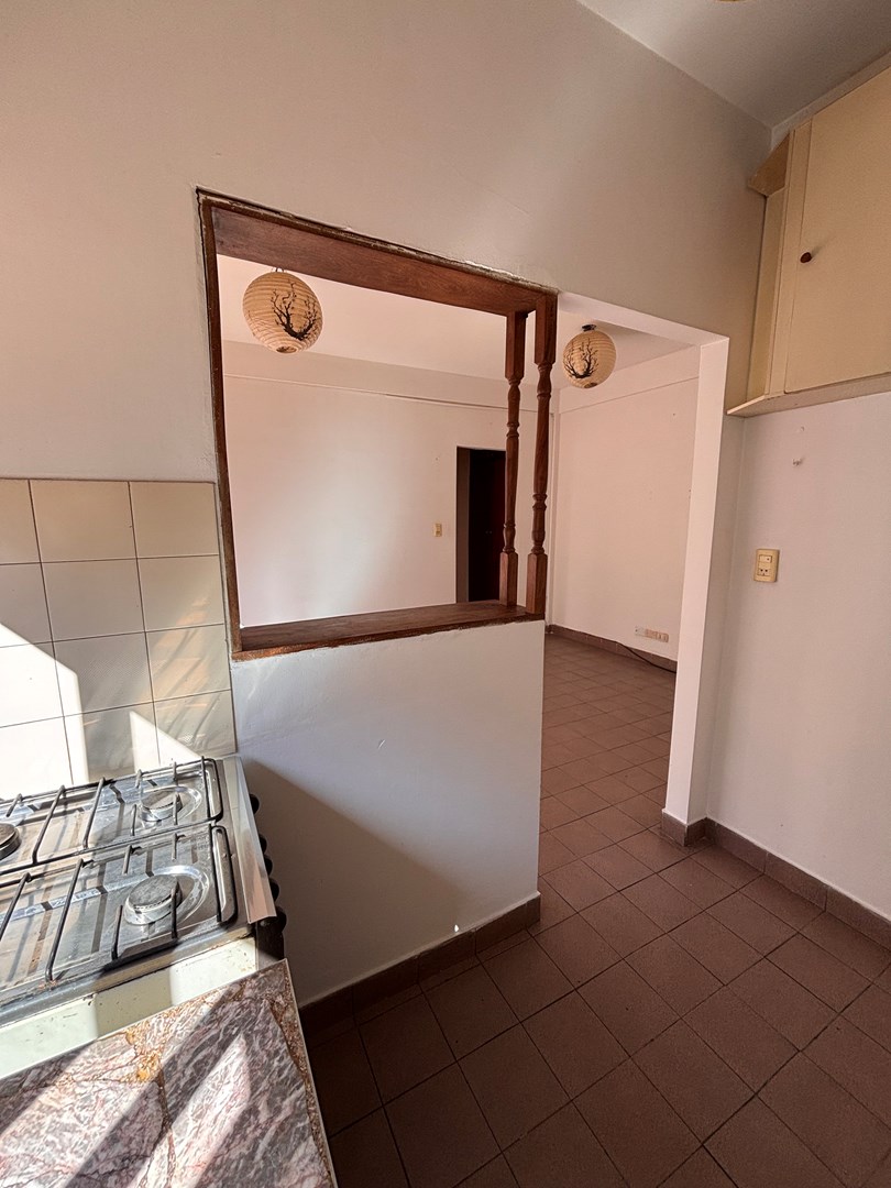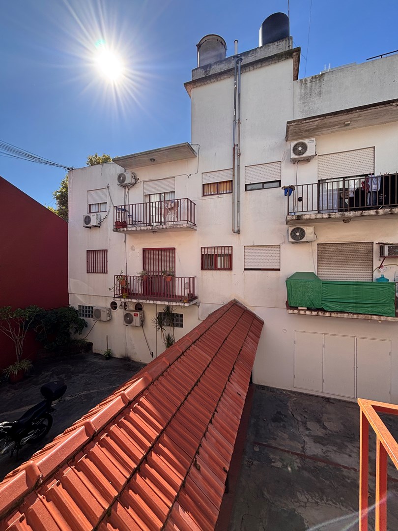 Luminoso departamento 2 ambientes con espacio guarda cochera. Se encuentra situado en primer piso por escalera, cocina semi integrada, salida hacia su balcón, habitación con placard empotrado y guardacoche descubierto en PB.